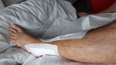 Seit gestern übe ich mehrmals täglich das Laufen mit KRÜCKEN und auf einem Bein. Nach einer Runde im Stationsflur bin ich schweißgebadet und erst einmal "fertig". Da muss noch viel Kondition aufgebaut werden, damit das nicht so "stümperhaft" aussieht.